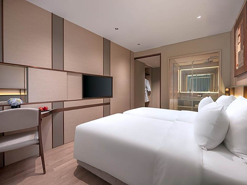 Providing free toiletries and bathrobes, this twin room includes a private bathroom with a walk-in shower, a hairdryer and slippers. The air-conditioned twin room provides a flat-screen TV with streaming services, soundproof walls, a mini-bar, a wardrobe as well as a quiet street view. The unit offers 2 beds.